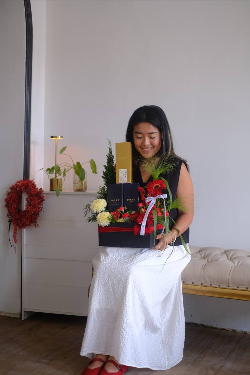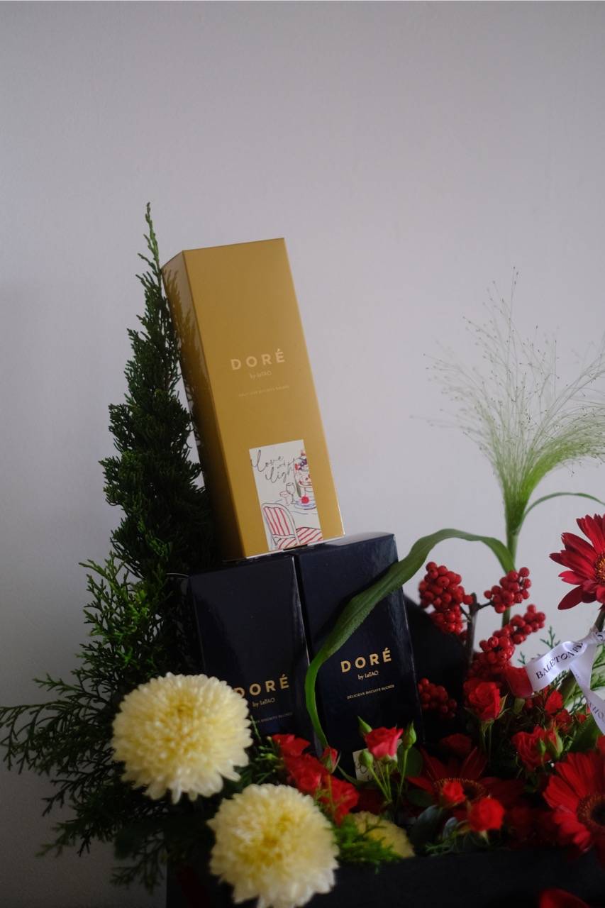 Fresh flowers meet artisanal Christmas cookies in a beautifully arranged box. Includes 3 boxes of handcrafted cookies, making it a delightful treat for both the eyes and the palate. A heartfelt gift that blends elegance with the warmth and cheer of Christmas. Perfect for gifting to friends, family, or colleagues this season.