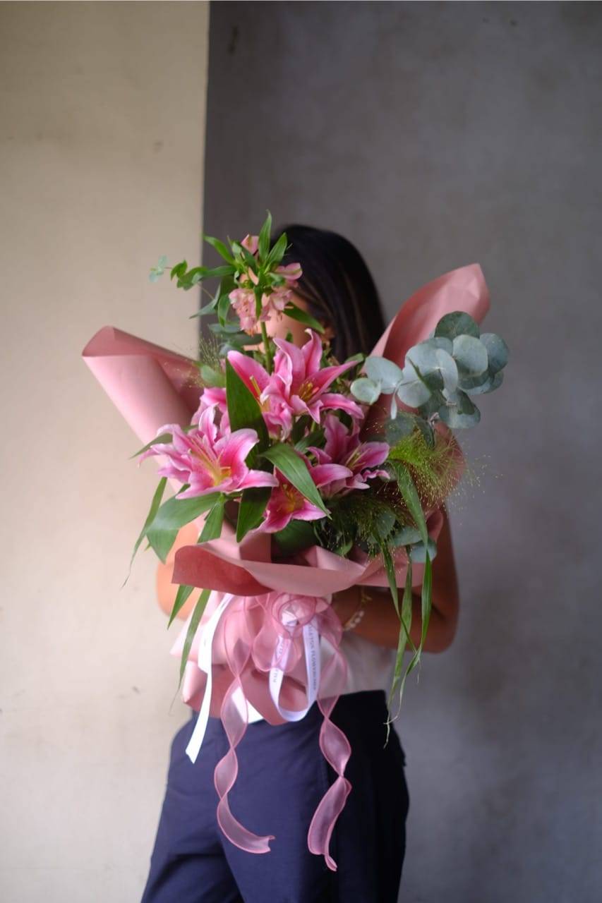 "Amorette Lily Serene is a a soft, inviting bouquet of fresh lilies, blending elegance with a cozy, intimate charm Hand-picked lilies, carefully arranged to create a harmonious and graceful display. Perfect for gifting someone special or elevating your home with natural beauty, this bouquet radiates timeless charm and heartfelt sophistication Available at Baleton Jakarta (Pluit & Kemang) & Baleton Tangerang (Gading Serpong) Approximate dimensions: H: 45 cm W: 70 cm **The photos and results of the arrangement may have slight differences due to lighting and flower availability. We’ll always confirm with the customer before sending the arrangement***" ------------------------------------------------------------------------------------------------------ "Amorette Lily Serene adalah bouquet bunga segar yang lembut dan memikat, memadukan keanggunan dengan kesan hangat dan bersahabat. Lily pilihan yang ditata dengan penuh perhatian untuk menciptakan tampilan yang harmonis dan anggun. Sempurna sebagai hadiah untuk orang istimewa atau untuk mempercantik rumah Anda dengan pesona alami, bouquet ini memancarkan keindahan abadi dan sentuhan elegan yang hangat Tersedia di Baleton Jakarta (Pluit & Kemang) dan Baleton Tangerang (Gading Serpong) Perkiraan dimensi: T: 45 cm L: 70 cm ***Foto dan hasil rangkaian mungkin saja ada sedikit perbedaan karena faktor pencahayaan dan ketersediaan bunga. Kami akan selalu pastikan ke customer sebelum rangkaiannya dikirim***"