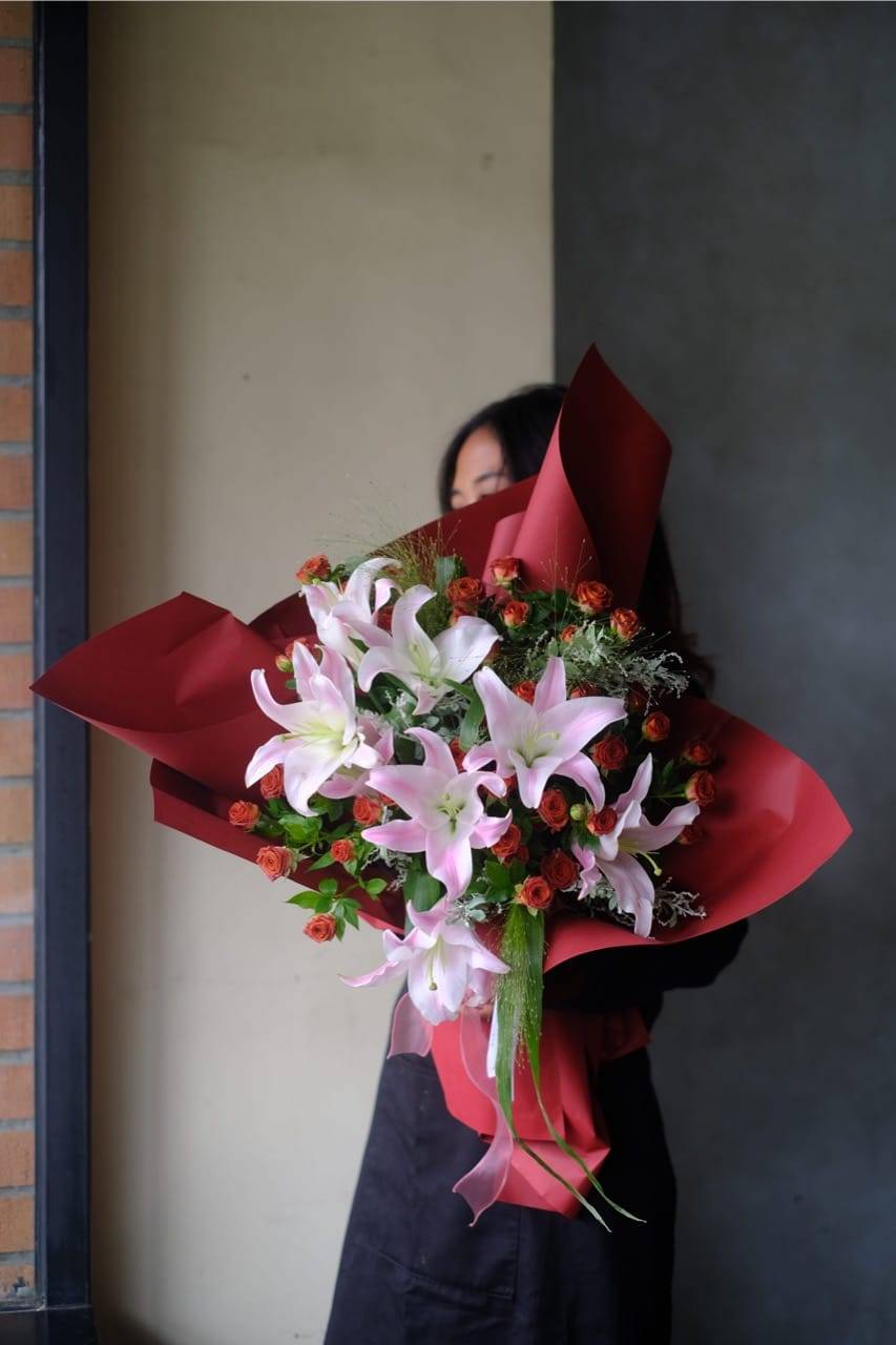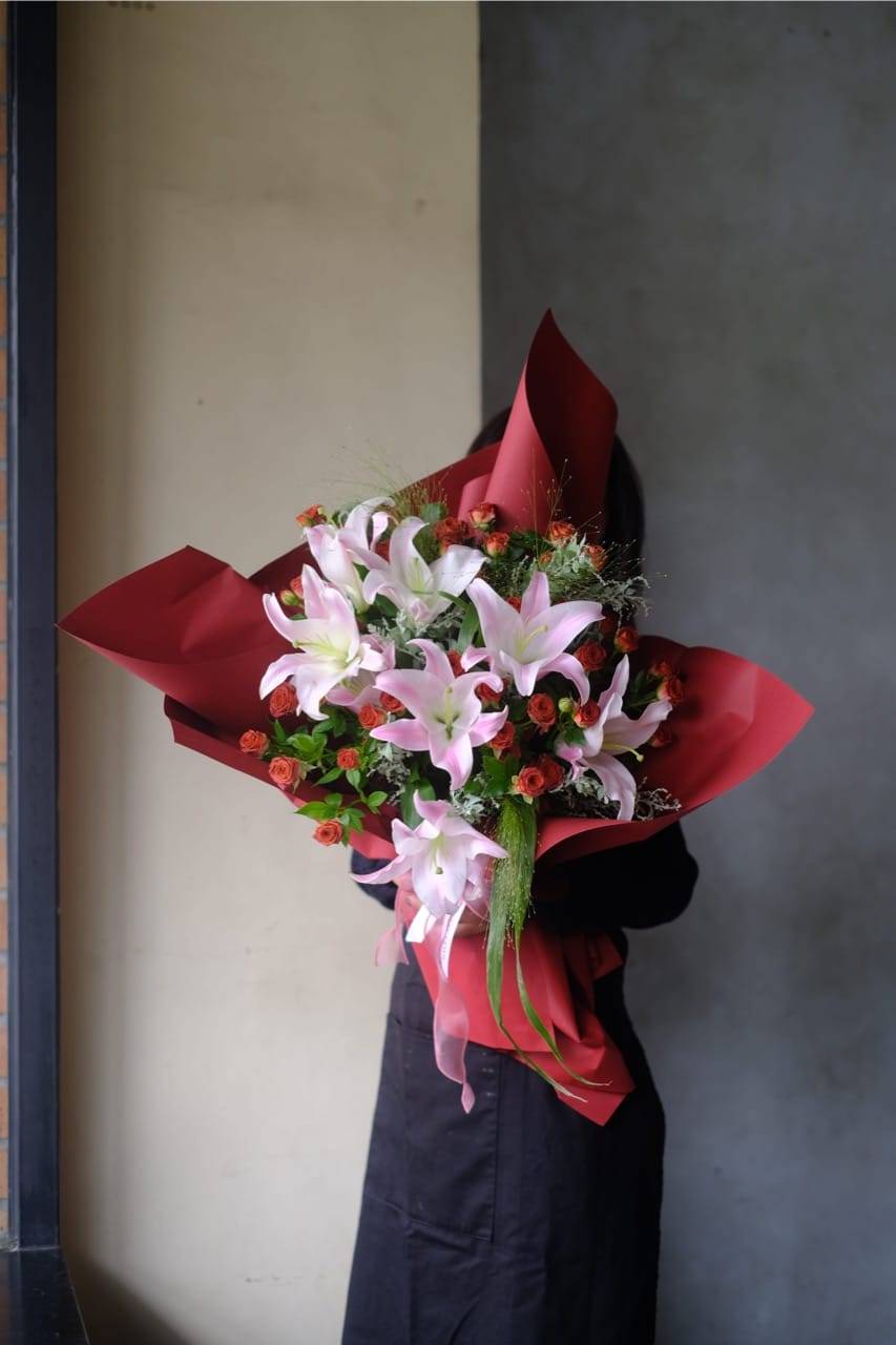 A graceful, elegant bouquet of fresh lilies in beautiful, harmonious tones, ideal for any special occasion