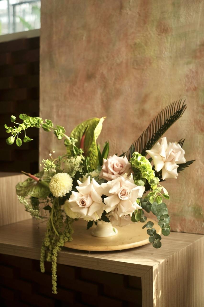 Arranging these flowers is not just decoration. Who could have imagined that the combination of elegant roses and exotic foliage could provide such an alluring tropical feel?
