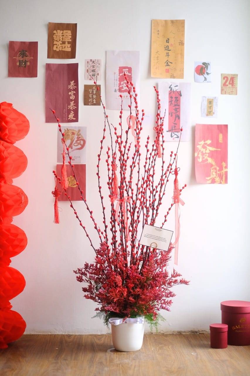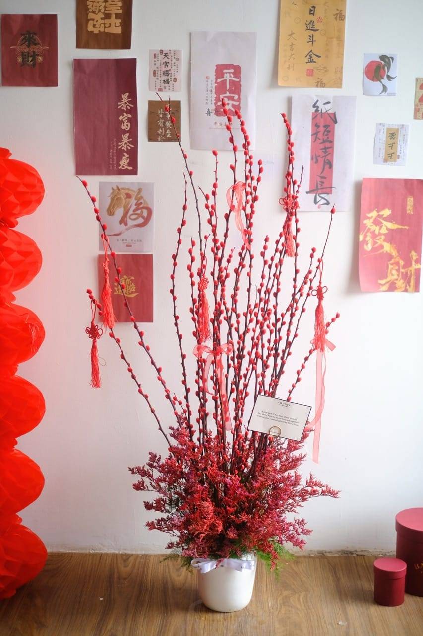 Fortune Ruby Reign combines the beauty of red pussy willow with a touch of grandeur. Each bloom carries wishes for luck, success,
