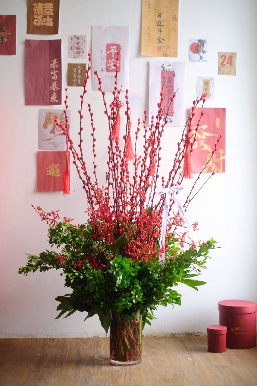 Gracella Willow Red combines elegance and luxury in its vibrant red pussy willow stems. Each bloom carries a wish for prosperity, happiness,