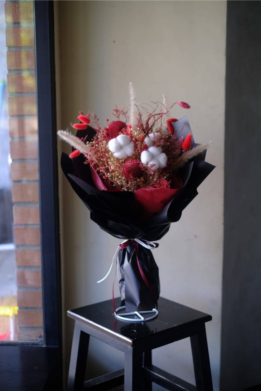 An arrangement of dark-toned blooms evoking sophistication, mystery, and timeless beauty