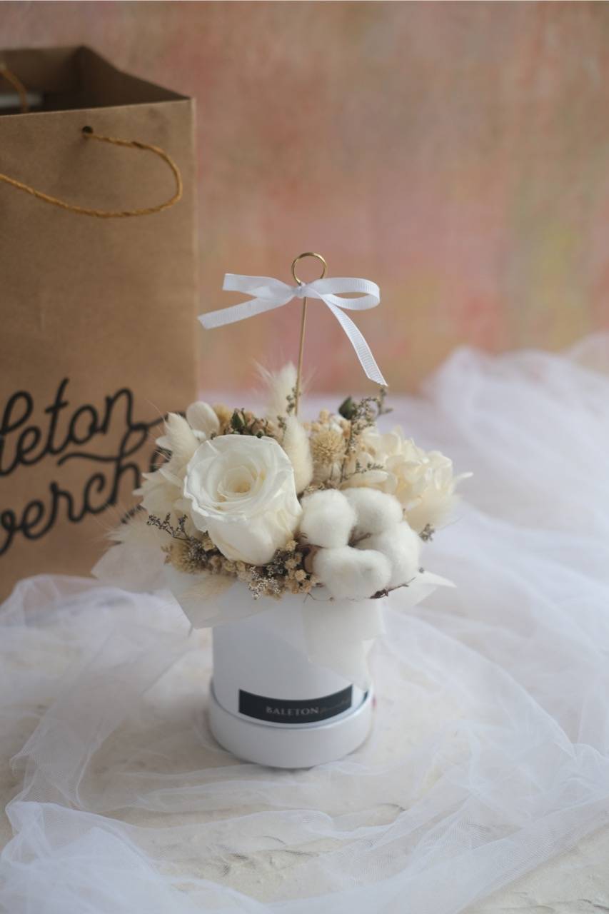 Ingredients: Rose, Babysbreathe, Hydrangea, Caspea, Filler, Gomprena, Baby rose (dried)