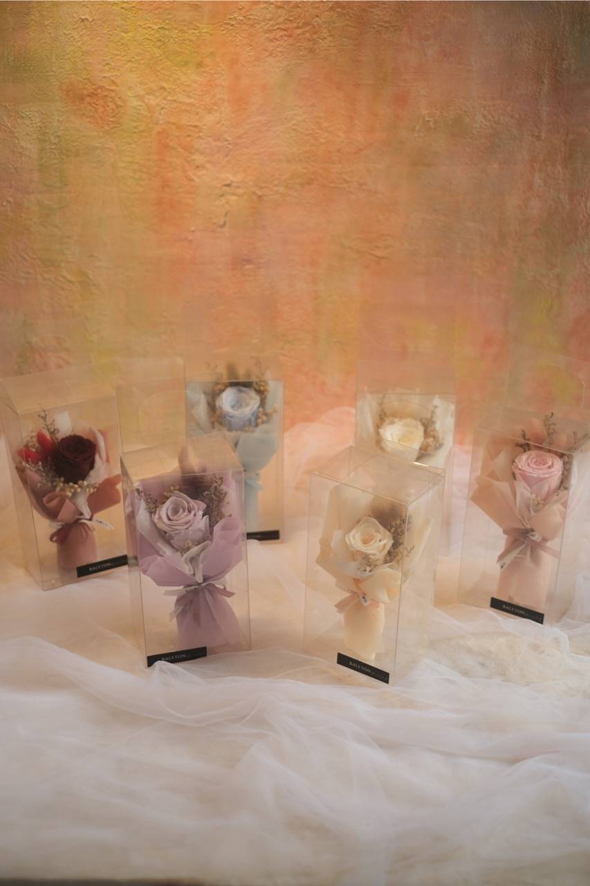Single Preserved Series. Ingredients: Rose, Babysbreathe, Caspea, Bunny Tail.